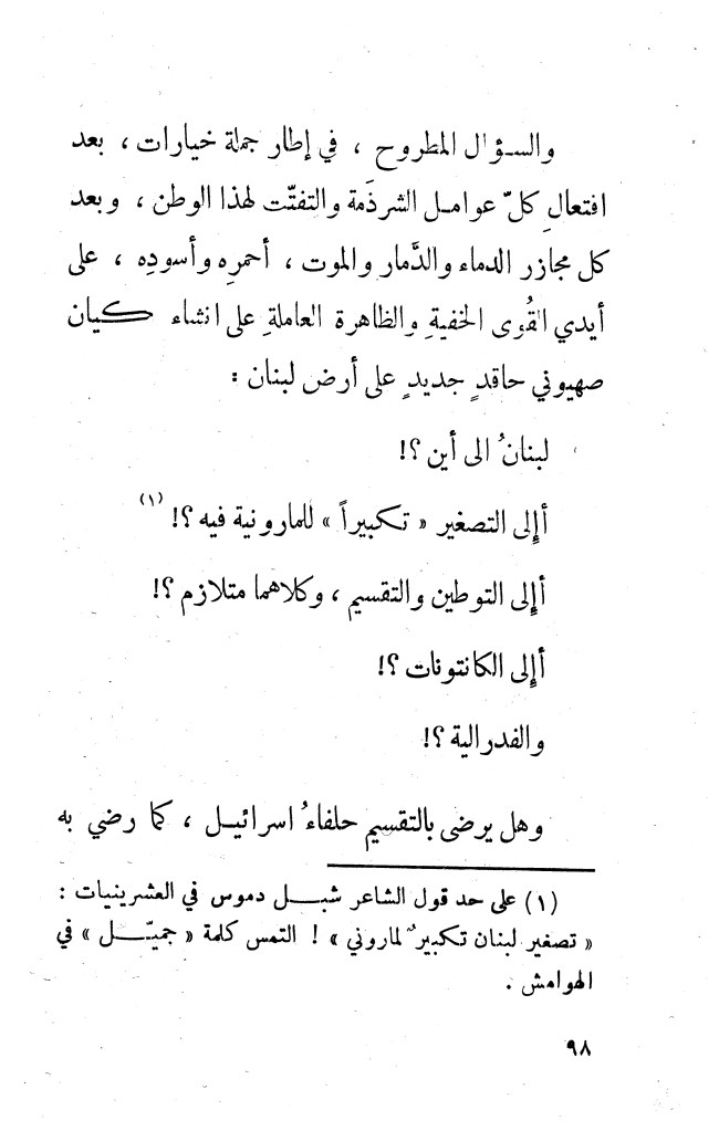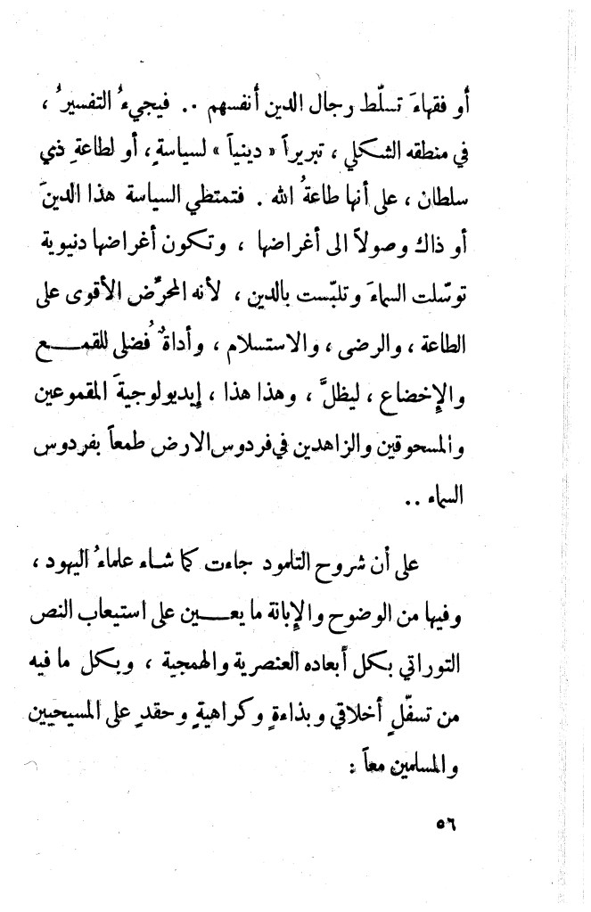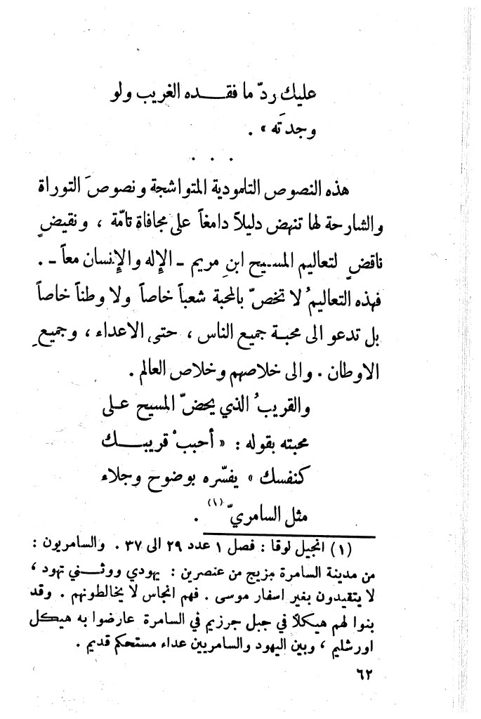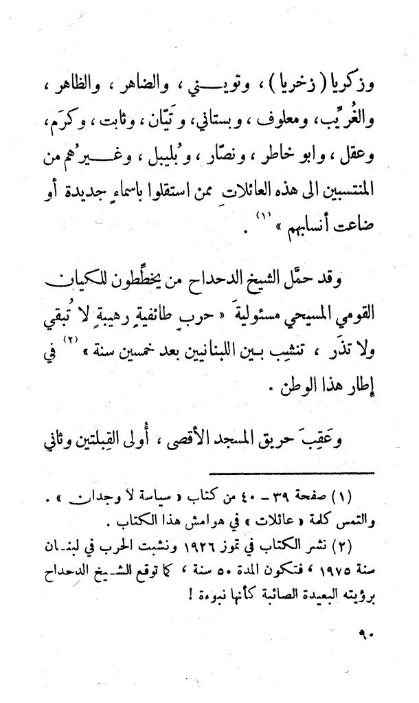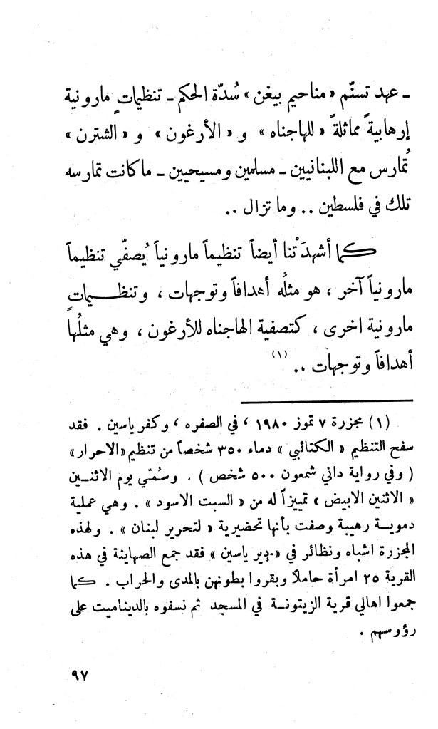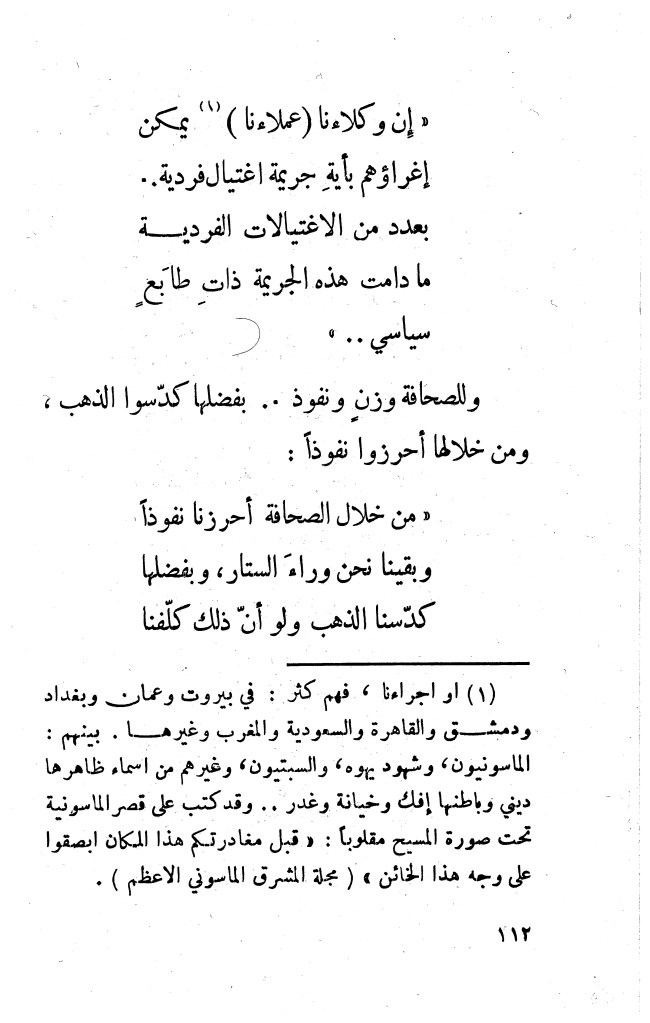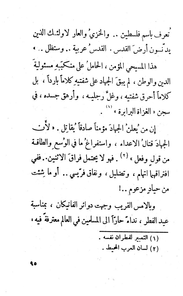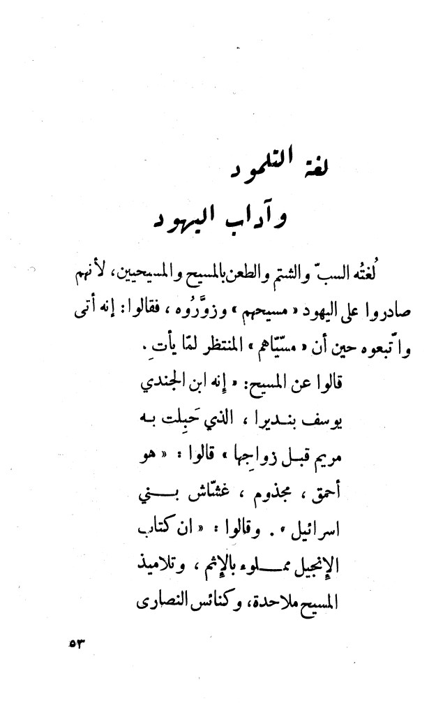 | الأب طانيوس منعم خطر اليهودية الصهيونية على النصرانية والاسلام طبعة ثانية مصححة ومنقحة اقرأ وربك الاكرم الذي علم بالقلم علم الانسان ما لم يعلم العلق : ( ٣ – ٤ – ٥) مقدمة للحقيقة : انجيلاً وللحقيقة : قرآناً وللحقيقة : تاريخاً وللحقيقة : إعلاماً وإعلاناً كانت هذه الحروف صفحات في كتاب في الذاكرة معلومات هي في الذهن معارف وهذه وتلك في عمل يُمارس ، وواقع يُعايش حقائق تعقل فالتاريخ لا يكتب مرة واحدة (…) تمهيد نحن اليوم ، في لبنان والعالم العربي ، أمام تحديات خطيرة ، وفي فم منعطف تاريخي خطير. وما نعاني ، على أرض الوطن ، من صراع دموي ، وتمزق روحي وأخلاقي مرده الى جملة أسباب، من أعمقها جذوراً، جهلنا المزمن لحقيقة اليهودية، وبالتالي الصهيونية، مضافاً إلى جهل ذوي الحكم ، أو تجاهلهم ، منذ نشوء الكيان الصهيوني على تراب فلسطين العربية . فلقد واجهنا الصراع ، ولا نملك من فهم أسبابه ما يعيننا على مواجهته ، بامتلاك أدوات المواجهة ، لأننا لا نعي هذه الأسباب وعياً موضوعياً ، وتاريخياً ، كما لا نعي هذه الأدوات . جيلنا الذي يكابد الصراع أقسى مكابدة نشأ في منأيّ ثقافي عن فهم قضية فلسطين ، من حيث هي جوهر ما يعتمل في الشرق الأوسط من صراع .. ومن حيث إن الصهيونية نواة هذا الصراع. نشأنا ننظر الى واقع القضية نظر عين لامّة ، لا نظر عينٍ ناقدة . حرِّم علينا ذكر كلمة اسرائيل في كتاب ، أو صحيفة . كأنما ورودها هرطقة وطنية! وبخاصة في أعقاب حرب سنة ١٩٤٨ . هذه الحرب التي كانت ائتماراً بالعرب ، وباشتراك العرب .. أي باشتراك من يُسمّون قادةً : ملوكاً ورؤساء. لقد غرسوا رؤوسنا في رمال غير متحركة وغسلوا أدمغتنا من التفكير . ومنعوا الأقلام أن تجري بحرف باحث مستنير ومنير . أو بحرف يشير الى اسرائيل ، و خطر الكيان الصهيوني العنصري الحاقد على العرب ، مسيحيين ومسلمين. حتى لكأن تجاهل وجود الشر نفي لوجوده أو نشوئه ، أو تفاقمه ، أو سيطرته. كان جيلنا ، معلمون و مربون، ورجال دين وقادة وأحزاب في أُميّة ثقافية وسياسية ودينية لا يحسد عليها ، ولكن يرثى لها . فما كانت قضية فلسطين وقضية الصهيونية في اسرائيل ، تعني لديه شيئاً لا في تاريخها القديم، ولا في تاريخها الحديث . ولا في ما لها من مخاطر تتفاعل على مسرح الشرق الأوسط. ونحن فيها نحن ، معنيون لحّاً بهذا التفاعل ، في أسبابه ونتائجه . وتوثيقاً لما أقول أسوق هذا الدليل : خذ اليك برامج التعليم الرسمي في الأربعينيات حتى الستينيات، وما يترتب عليها من كتب ، فإنك لا تجد درساً واحداً في كتاب مدرسي يتناول قضية فلسطين ، والفلسطينيون مطرودون من أرضهم ، لاجئون في أرضنا . ومن أمس قريب كنت إذا ذاكرت أي أستاذ ثانوي ، أو طارحت جامعياً ، خطر الصهيونية على لبنان ، وعلاقتها بالقضية الفلسطينية ، وقعت على ما هو عجب عجاب ، فكراً وموقفاً ، هذا إذا لم يكتف بهز الكتفين وقلب الشفتين ، كأنما الأمر لا يعنيه ، ولا يثير اهتمامه من قرب أو بعد وهذه اللامبالاة انما هي نتاج فراغ ثقافي ، سياسي في هذا الباب ، غير مقصور على المثقفين وأكثرية الشعب، بل يتناول القادة والزعماء . فلقد كانت المنافع الآنية لهؤلاء حجاباً كثيفاً ما نعاً من استكشاف الغد، واستشفاف المستقبل. ولعل البحث البكر الذي تناول قضية فلسطين ، ولو على نحو مختل وأيديولوجية مريضة، كتاب « التنشئة الوطنية الانسانية » (1) ، ولكنه ظل كتاباً مطبوعاً بأناقة ، فلم يُعتمد ، ولم يُدرّس . واستبدل به كتاب آخر في « التربية المدنية » كان له حظ سلفه ، وألغيت مادة التربية من البرنامج الرسمي ، وظَلَّ النشء اللبناني ، في المراحل الثانوية ، بلا تربية مدنية وإنسانية ، ترك انتفاؤها من « ثقافة » الانسان في لبنان ممارسات لا إنسانية ورواسم وحشية ، في الحرب اللبنانية القذرة ، على مساحة هذا الوطن . وظل الوطن والمواطن بلا هوية ، لأن ذوي الأمر فينا ، وذوي السلطان ، مختلفون في شأن الهوية . . وجوهر خلافهم طائفي ، سياسي إيديولوجي . فما كان التوجيه التربوي هادفاً الى بناء وطن ومواطنين ينصهرون في و